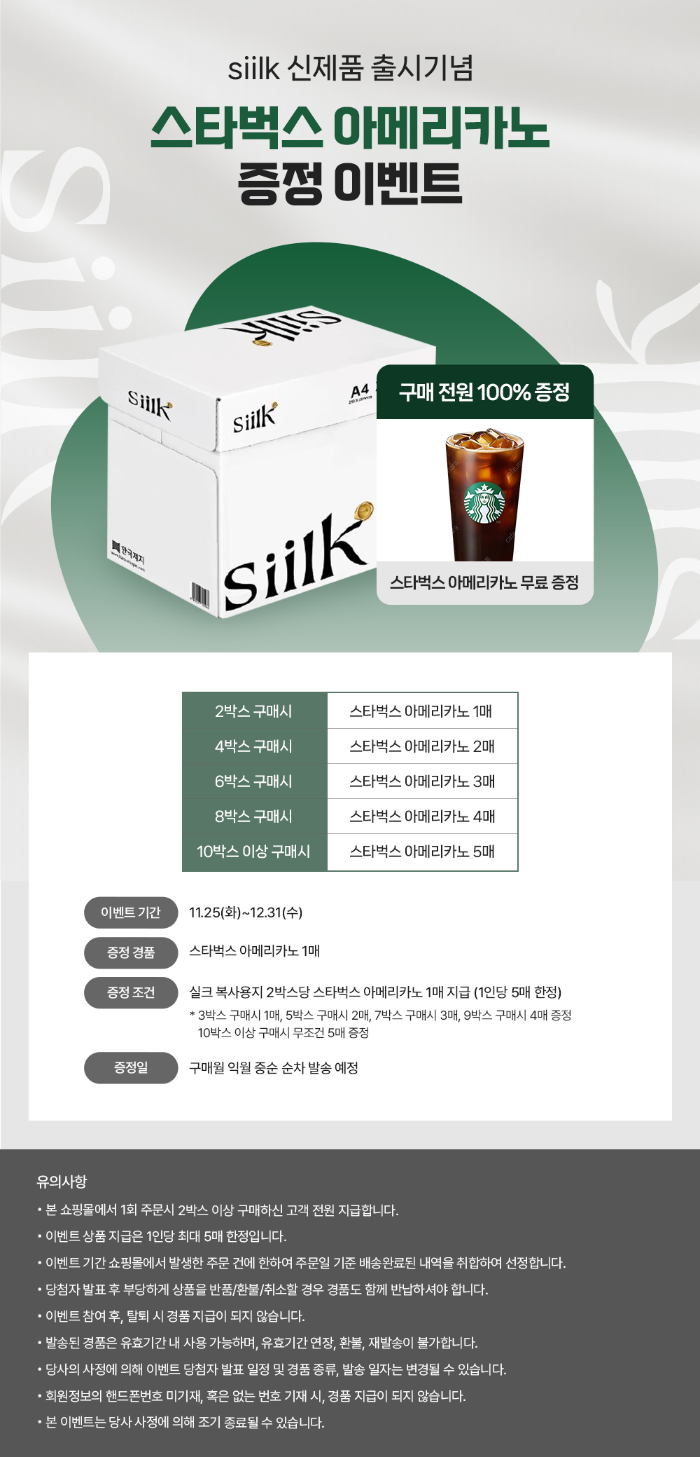 실크복사용지Siilk(A4/80g/2500매/한국제지)